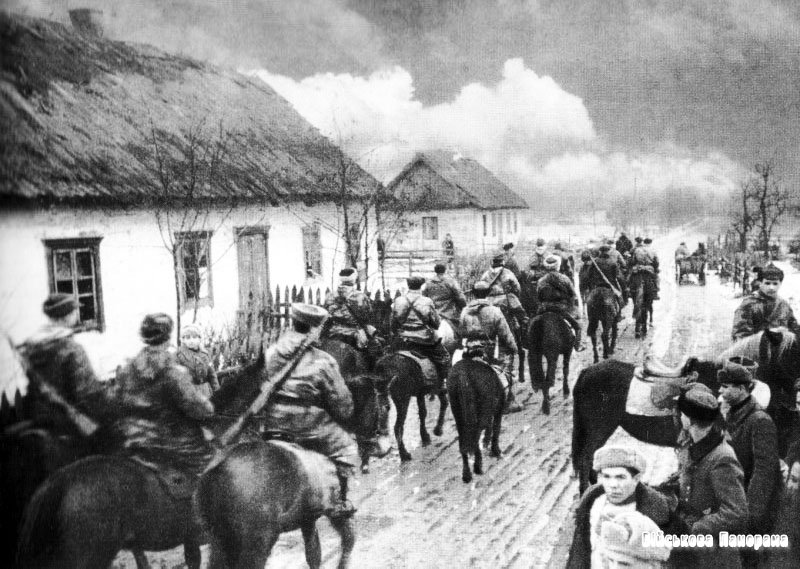 Партизанський загін С.А.Ковпака проходить по вулиці українського села